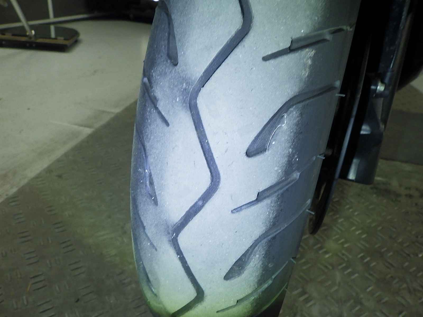 Передняя покрышка: Трещина на шине, требуется замена.