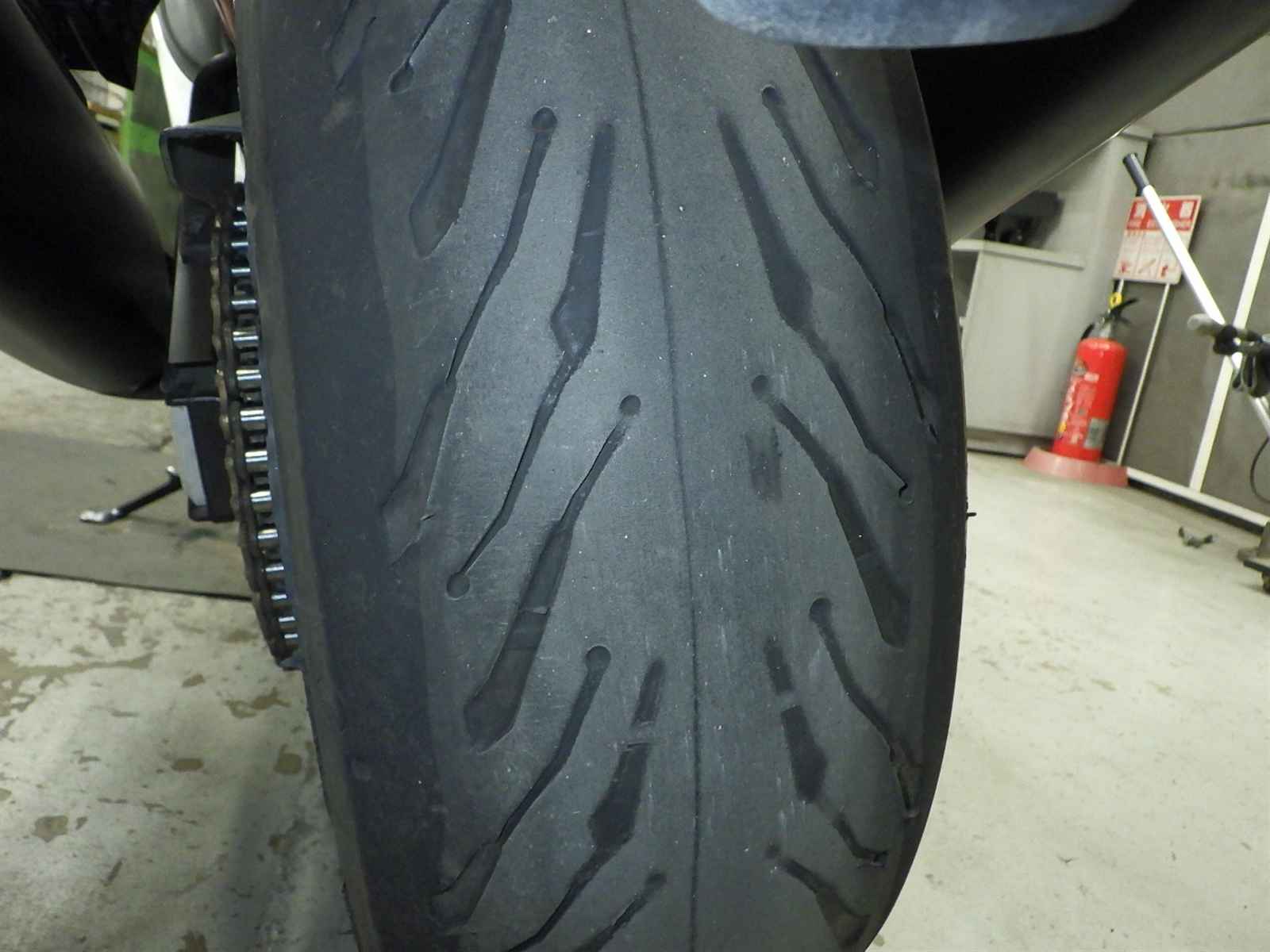 Задняя покрышка: Требуется замена изношенного шины.