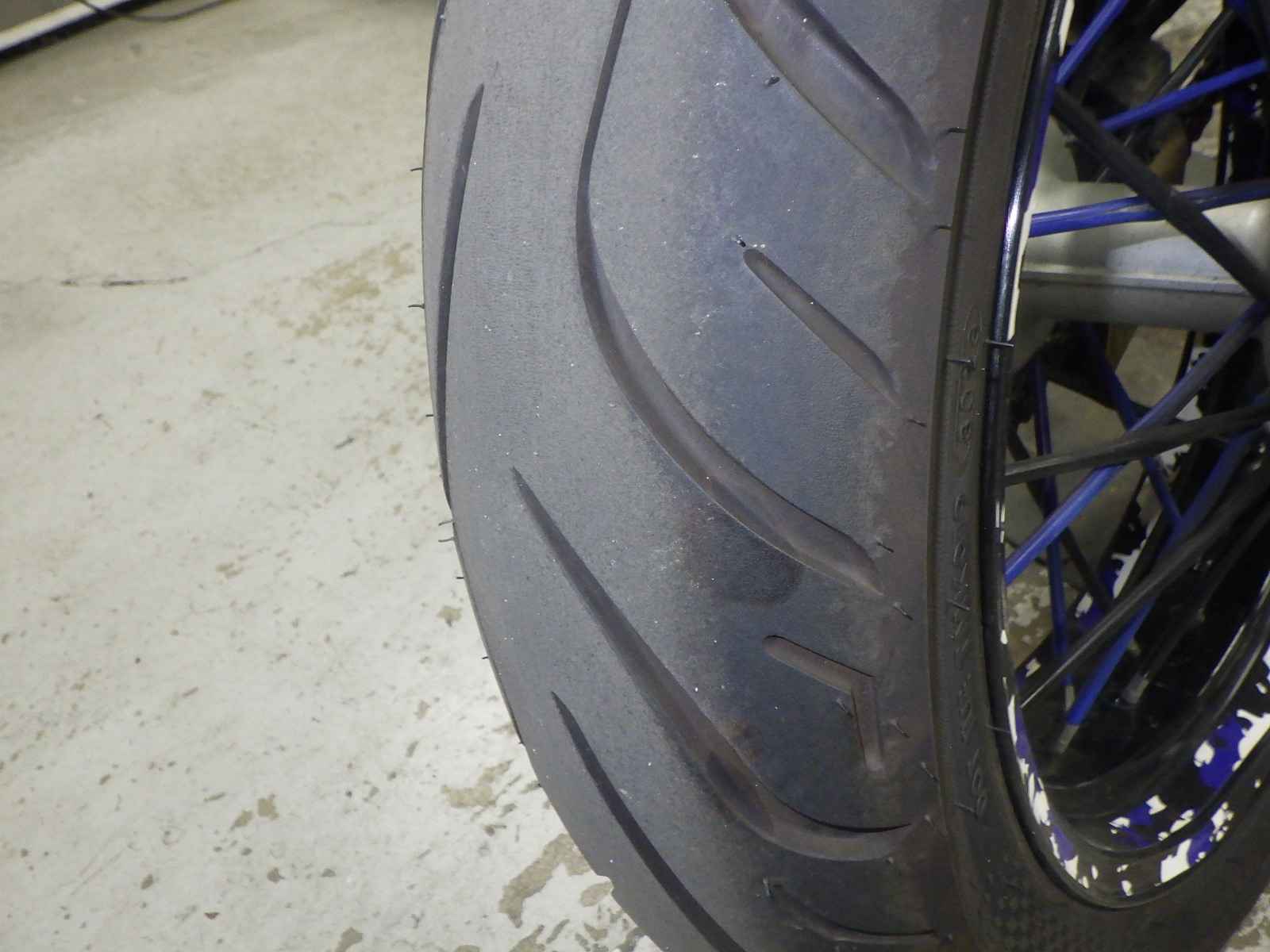 Передняя покрышка: Требуется замена изношенного шины.
