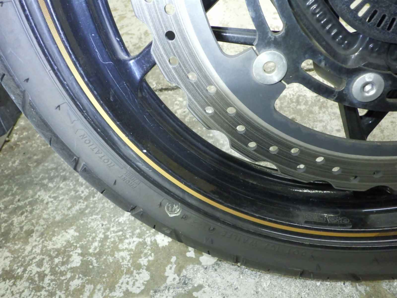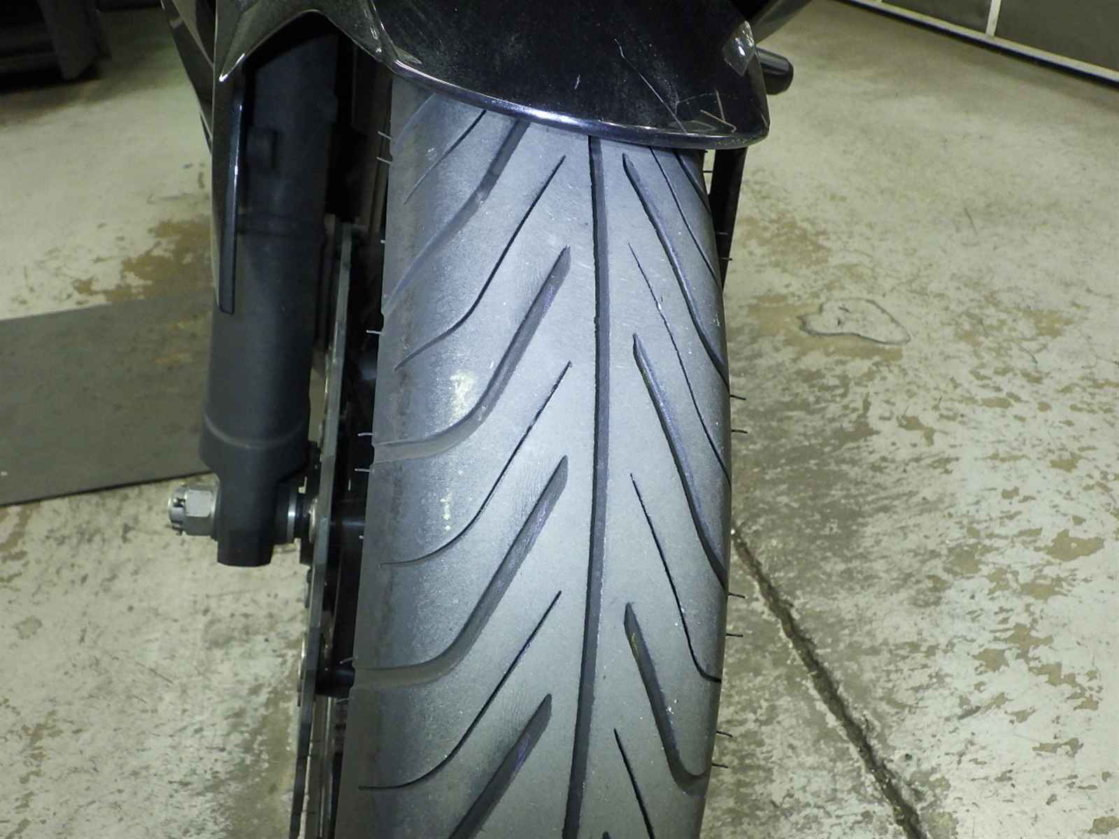 Передняя покрышка: Снижение давления в шине, Трещина требует замены.