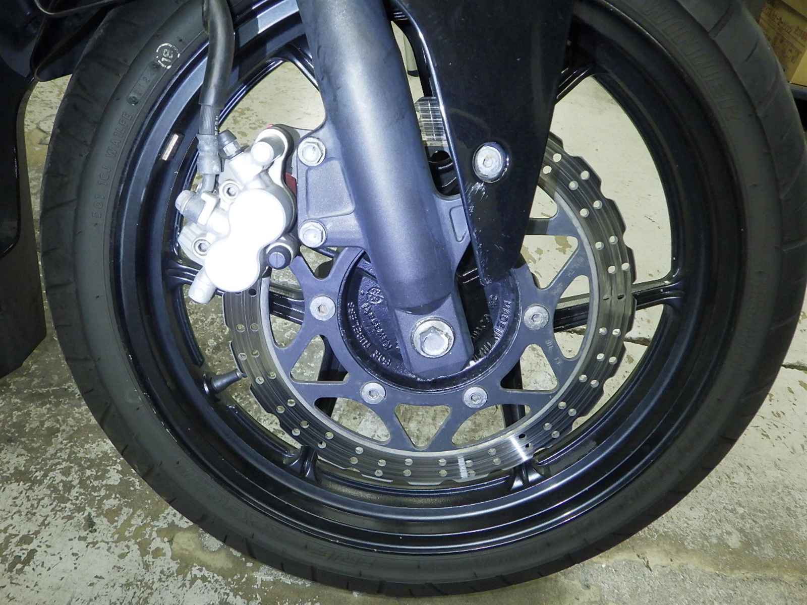 Передняя покрышка: Снижение давления в шине, Трещина требует замены.
