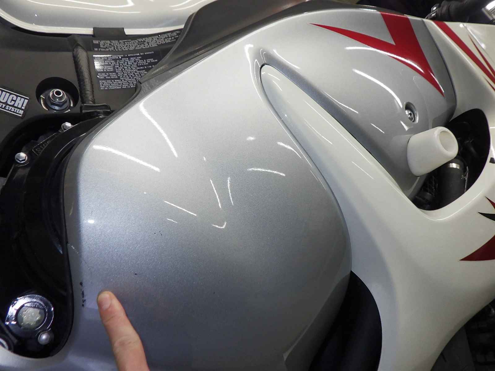 カウルズレ。スライダー付きキズ、塗り。各所ステッカー貼り、変色。
