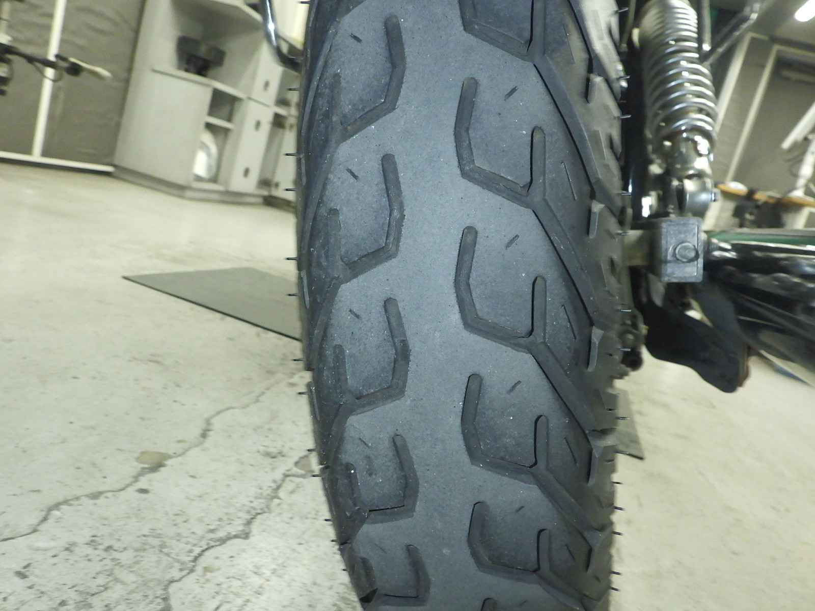 Задняя покрышка: Снижение давления в шине, Трещина требует замены.