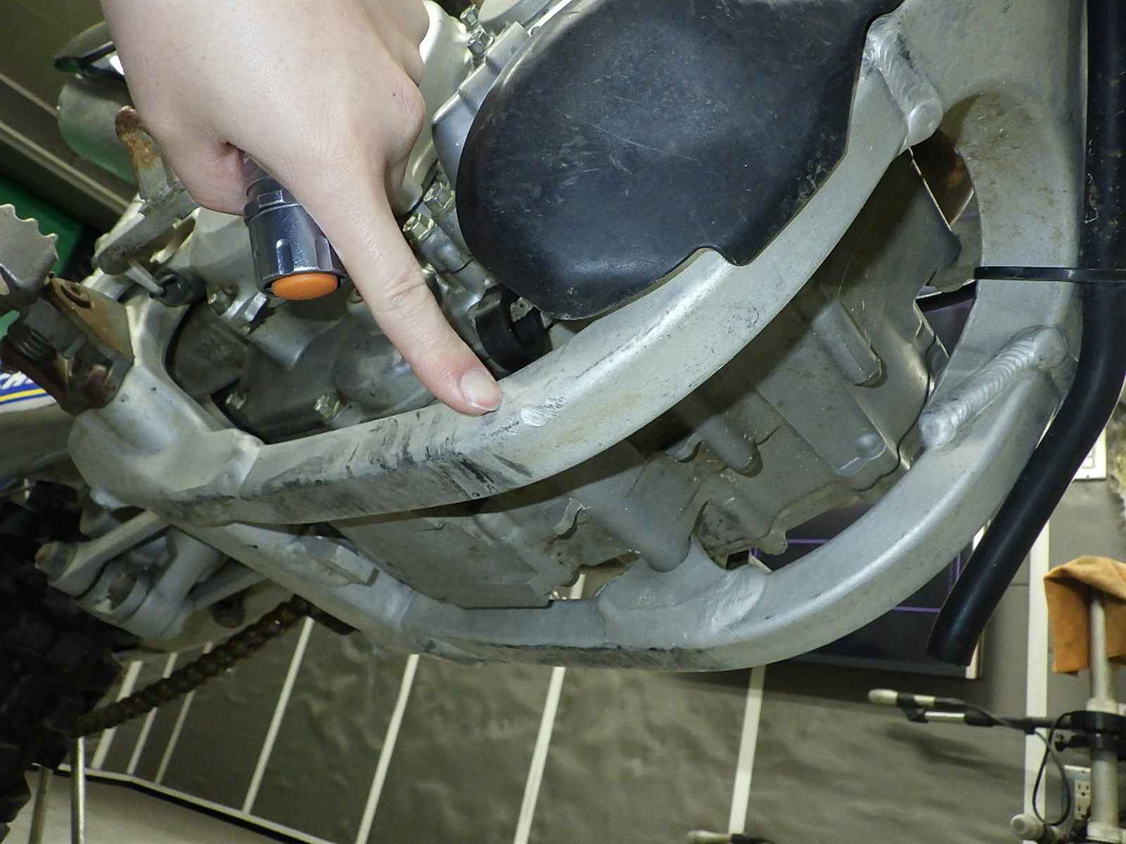 Нижняя труба рамы: Недочет нижнего трубчатого элемента Уровень 3, Вмятина, Потёртость