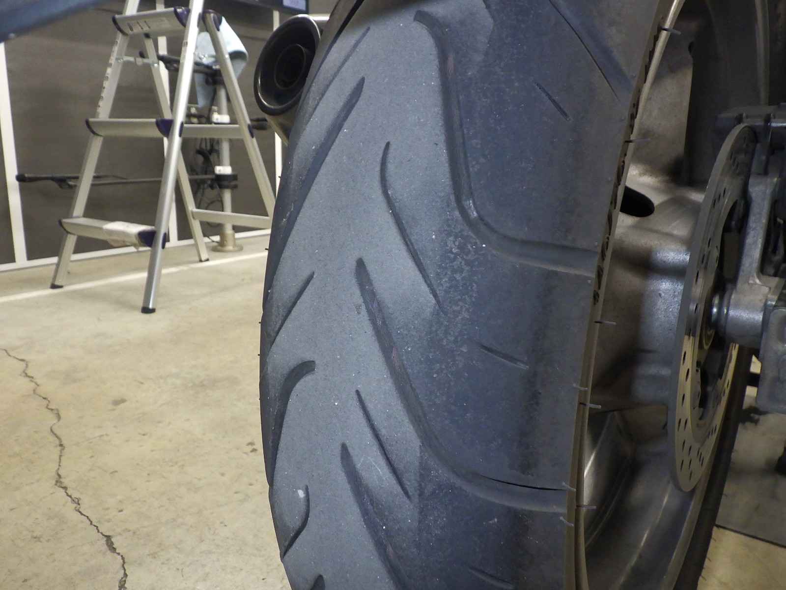Задняя покрышка: Требуется замена изношенного шины.