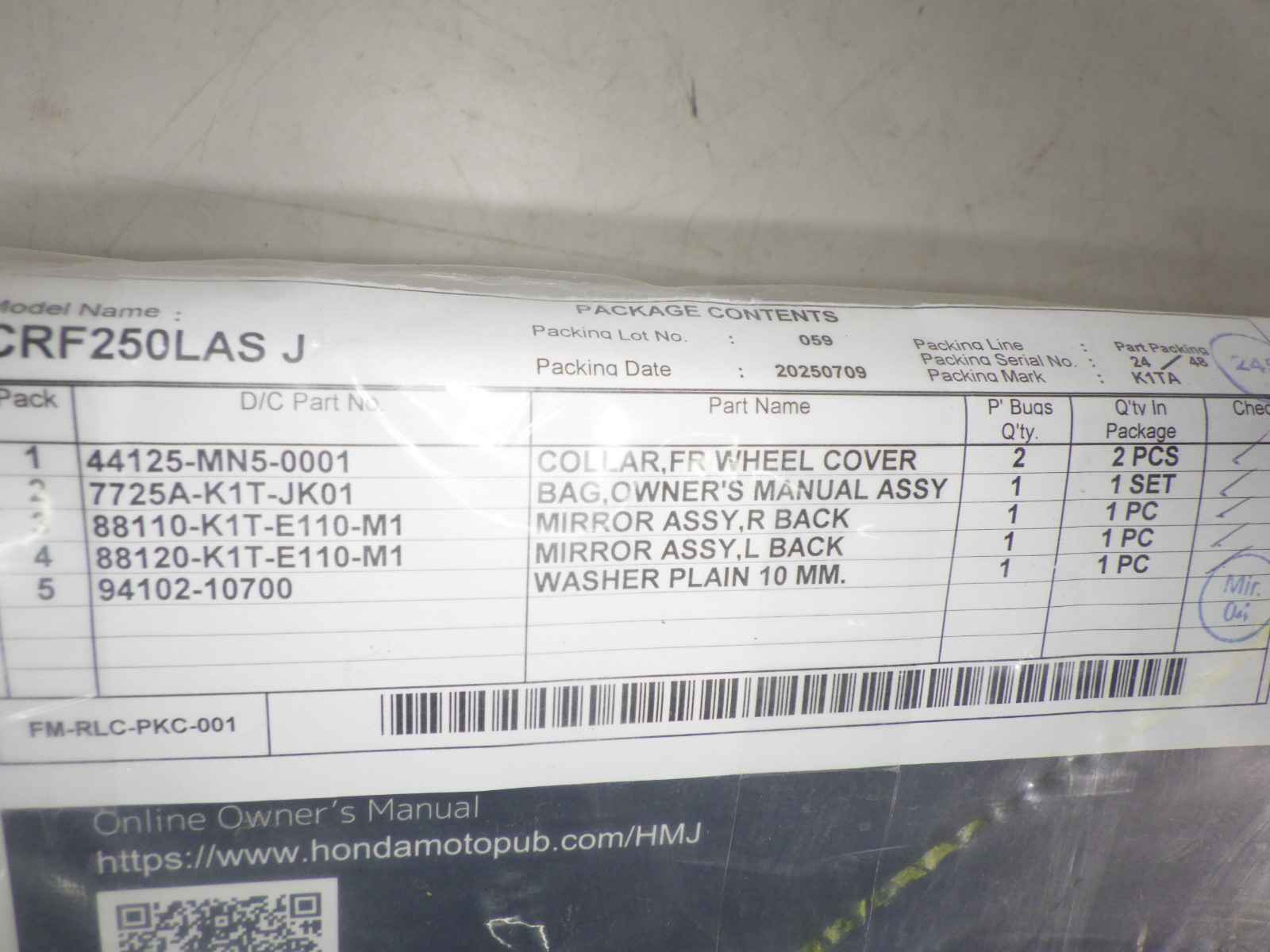 Номер рамы: MD47-1201630