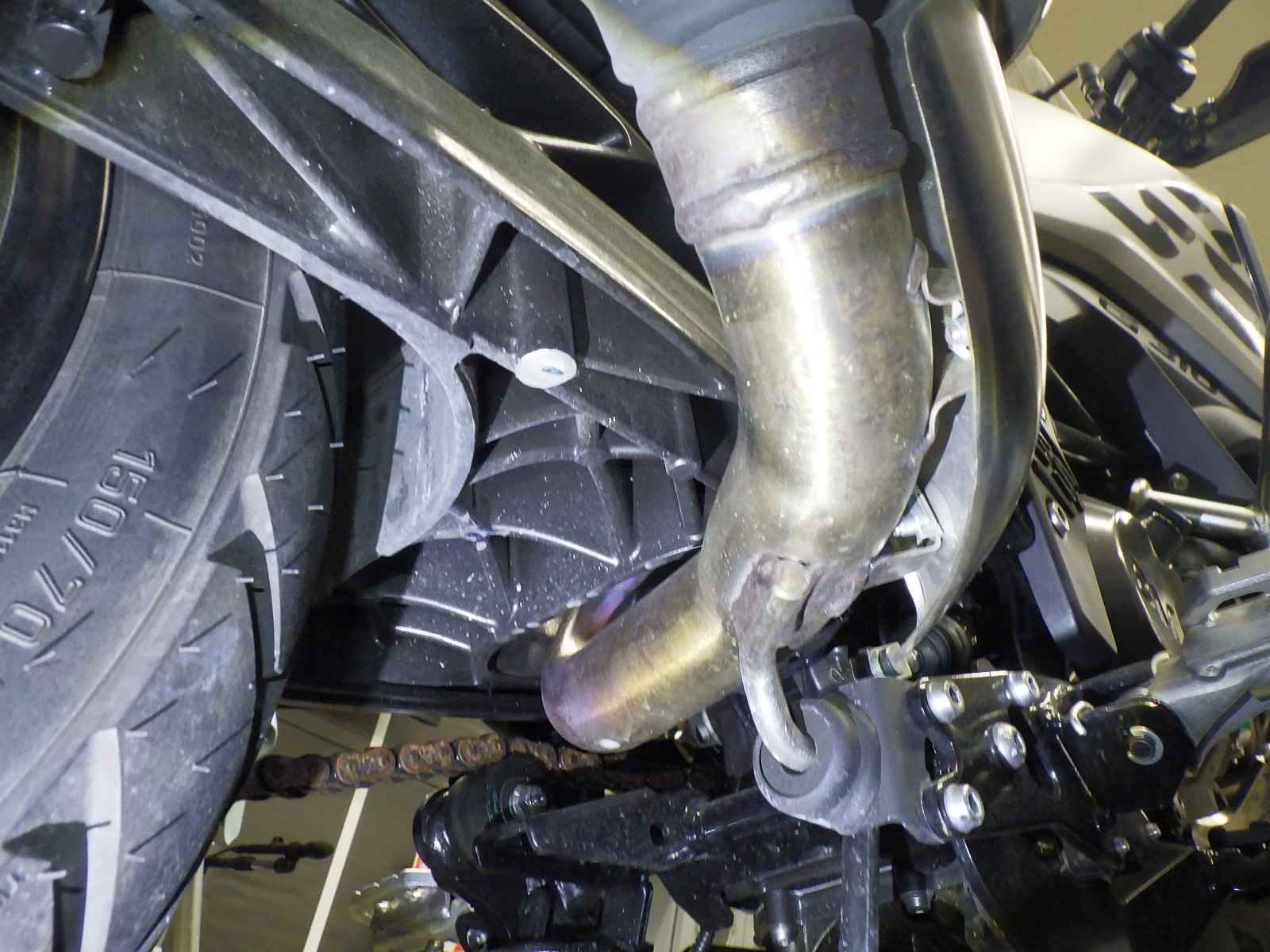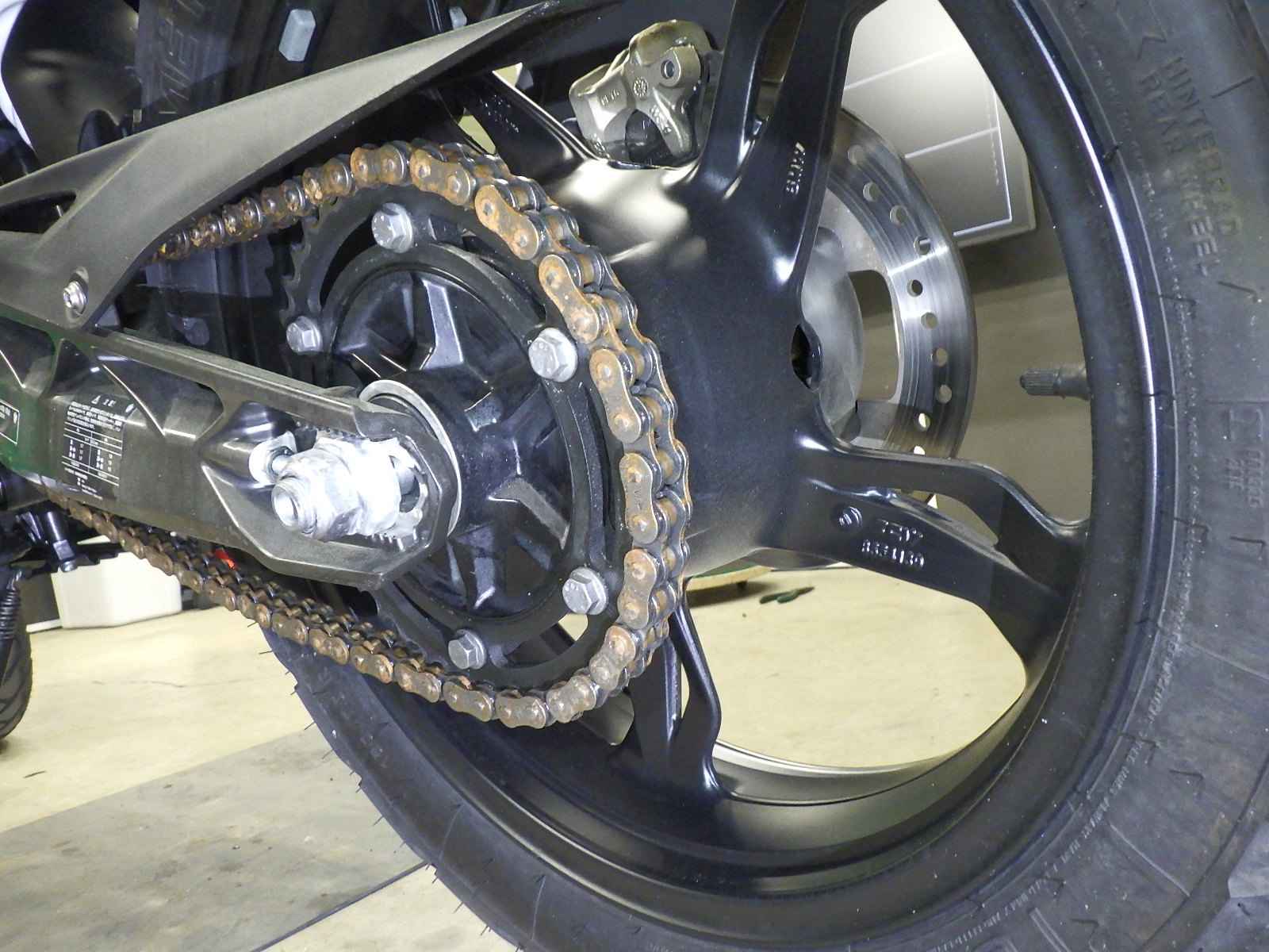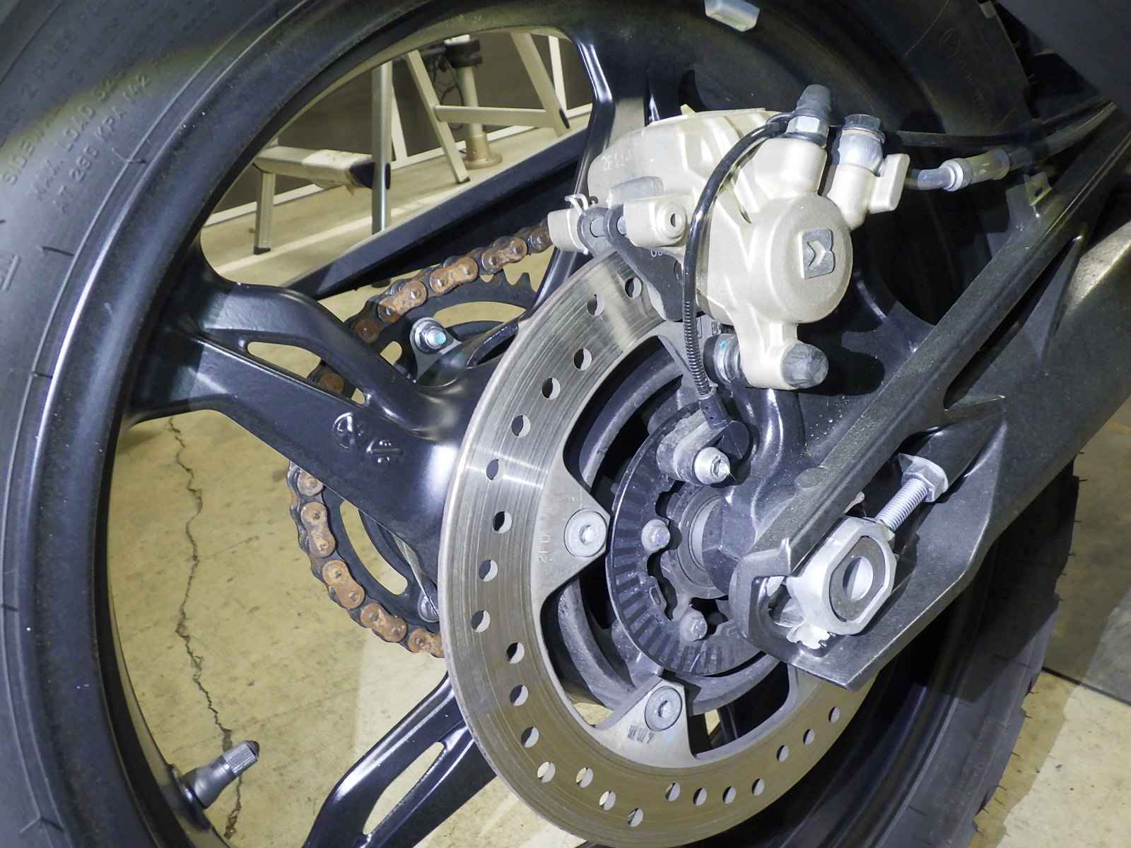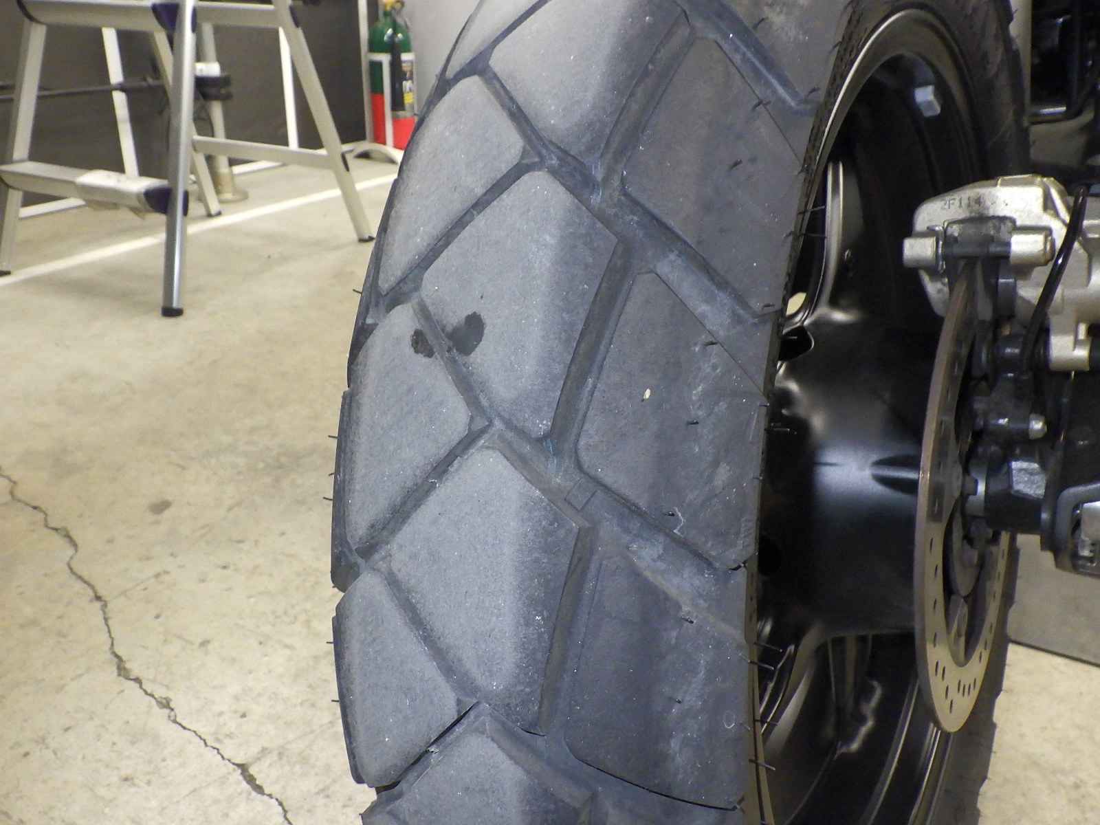 Задняя покрышка: Трещина на шине, требуется замена.