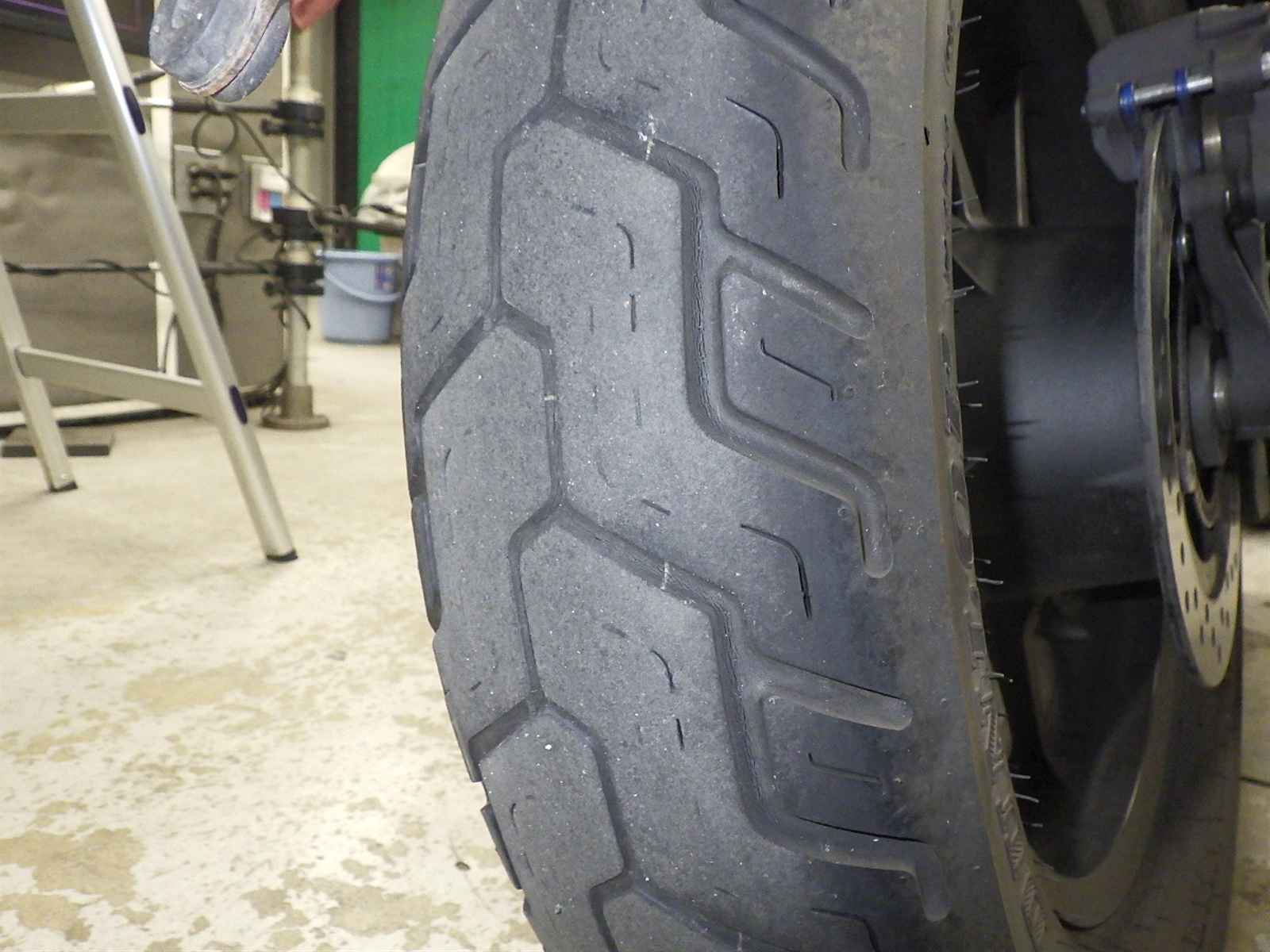Задняя покрышка: Снижение давления в шине, Трещина требует замены.