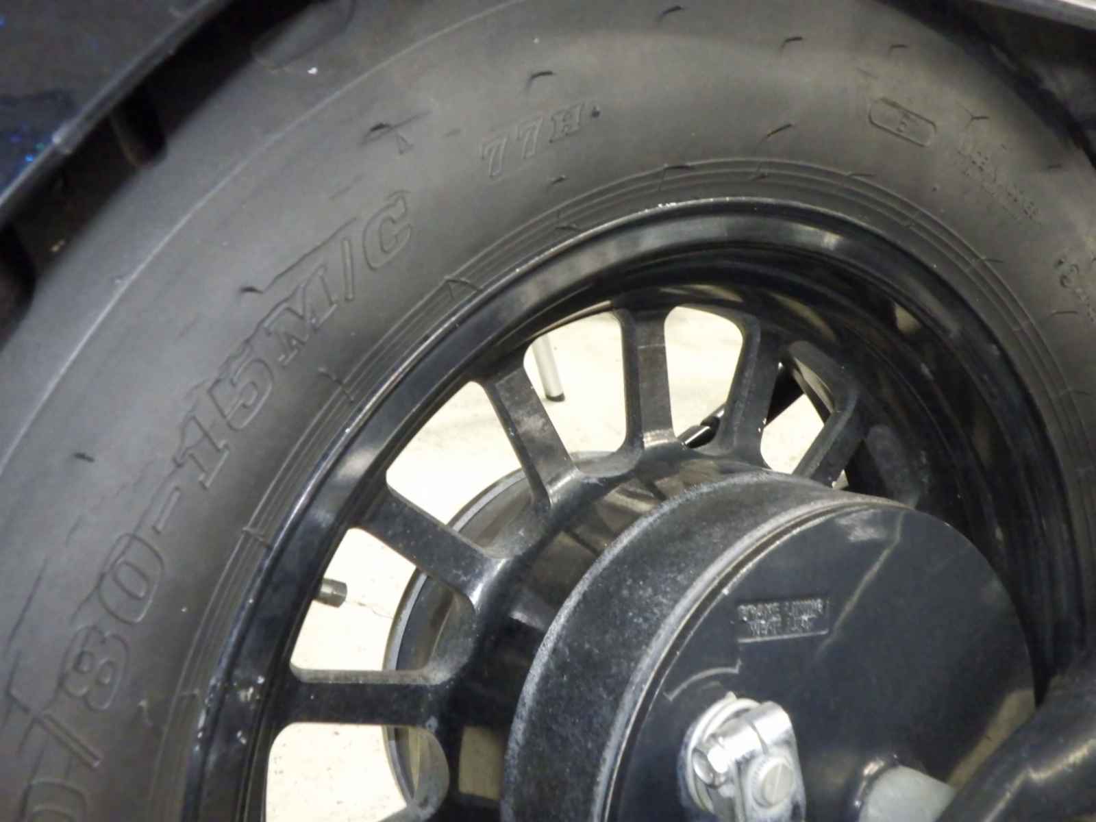 Задняя покрышка: Трещина на шине, требуется замена.