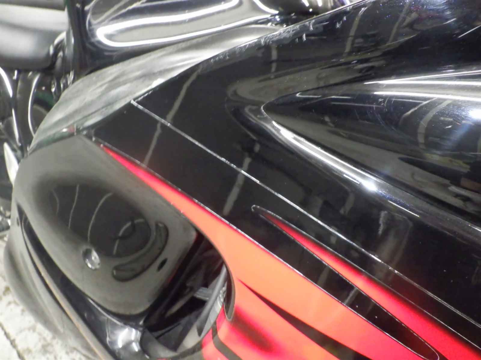 Передний пластик: Верхний недочет Уровень 3, Частичная потеря покраски, Трещины, повреждения и отсутствующие детали.