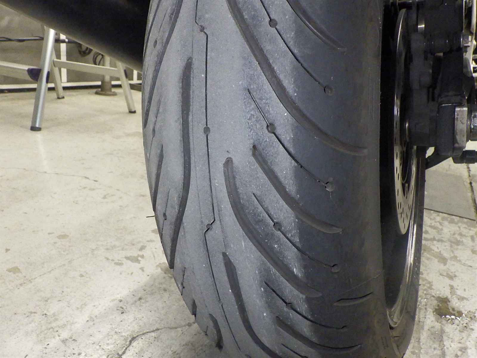 Передняя покрышка: Требуется замена изношенного шины.