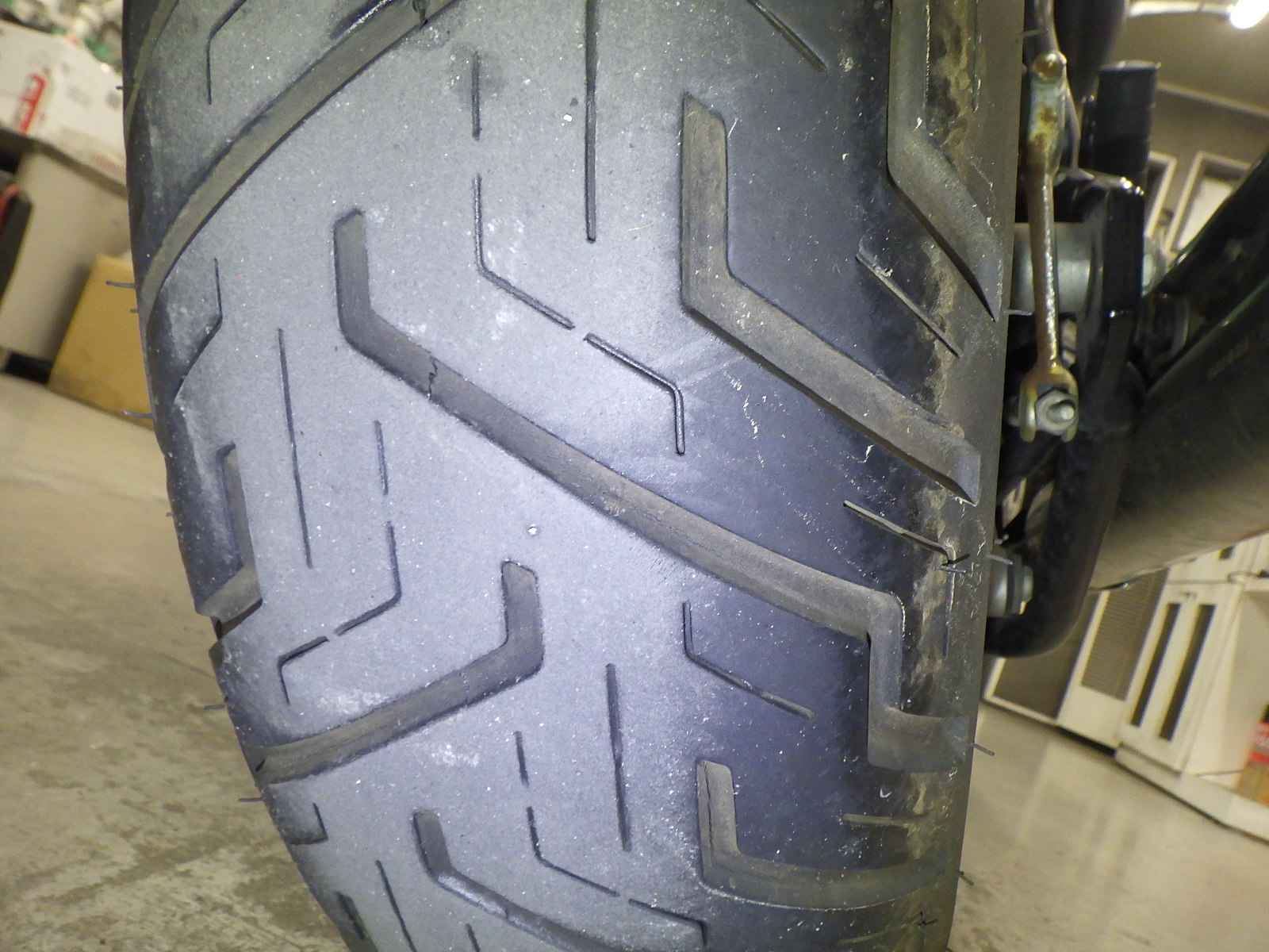 Задняя покрышка: Трещина на шине, требуется замена.