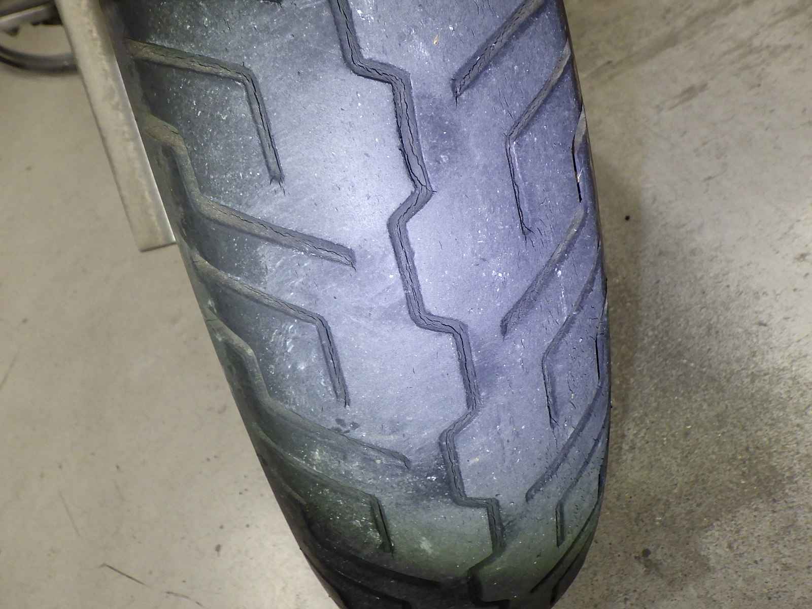 Передняя покрышка: Снижение давления в шине, Трещина требует замены.