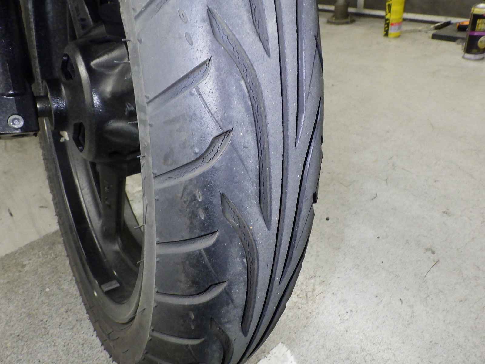 Передняя покрышка: Трещина на шине, требуется замена.