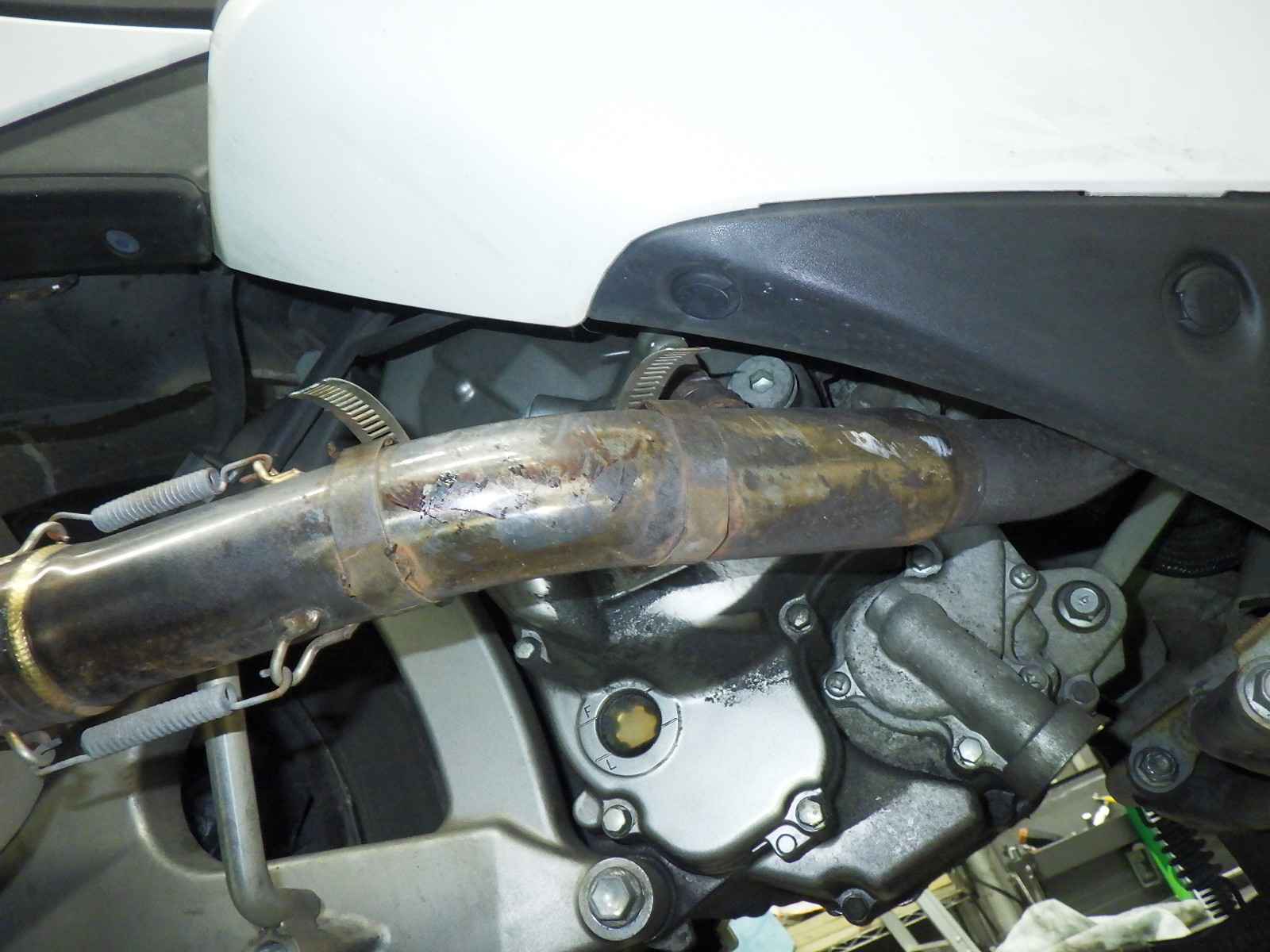 インナーカウル変色大。前足回りねじれ。