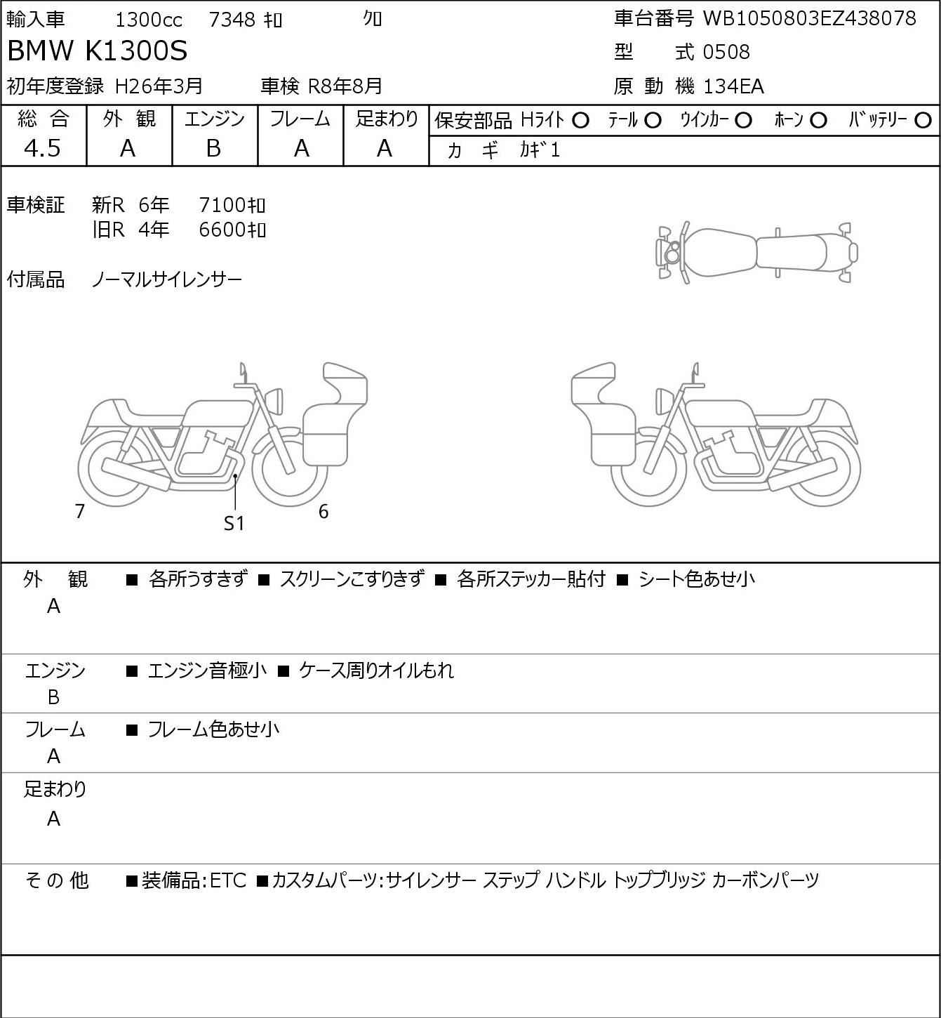 Номер рамы: WB1050803EZ438078