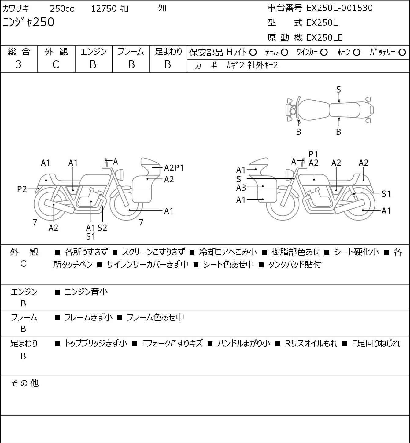 Номер рамы: EX250L-001530