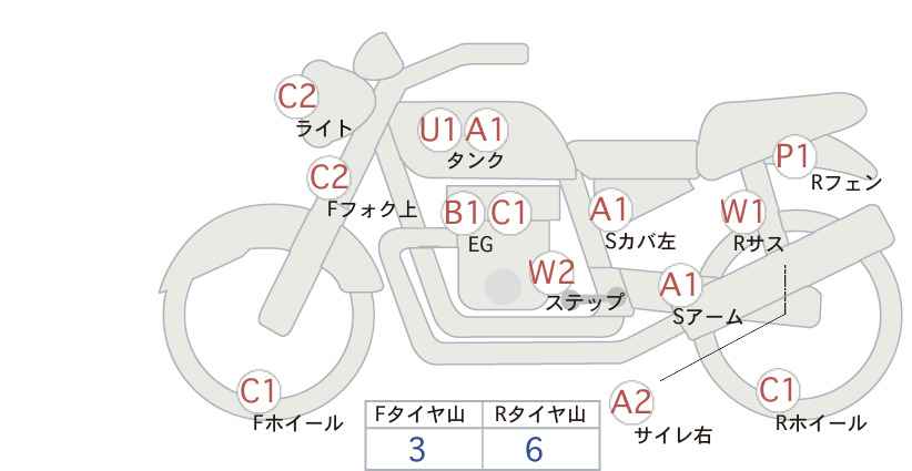 - Царапины на заднем амортизаторе и топливном баке <маленькие>.