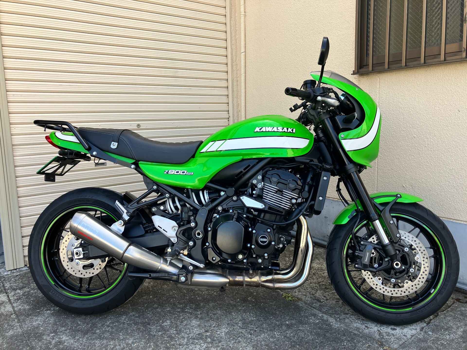 - Следы от термонаклейки на правом глушителе