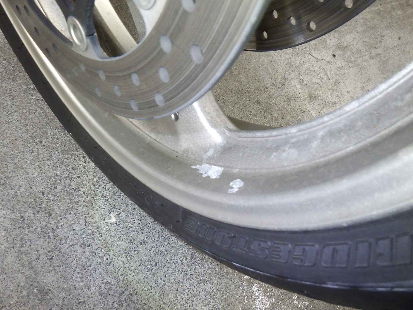Переднее колесо: Недочет колеса, Окисление Уровень 3, облезлая краска